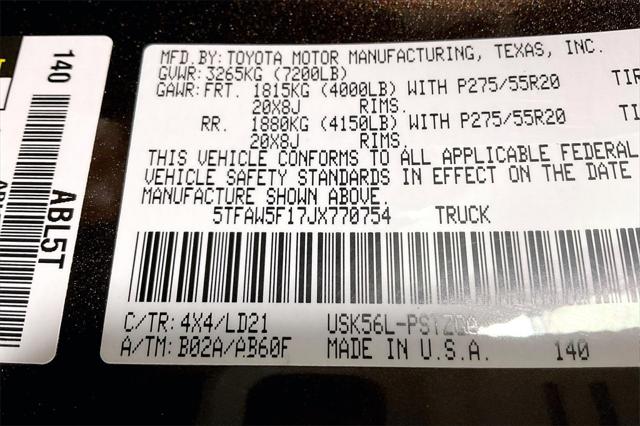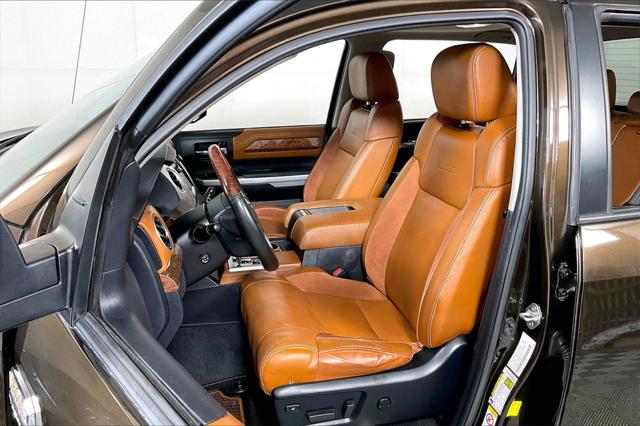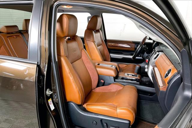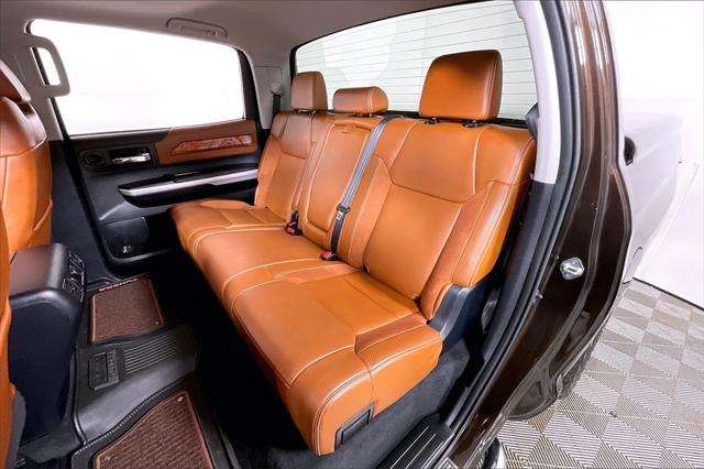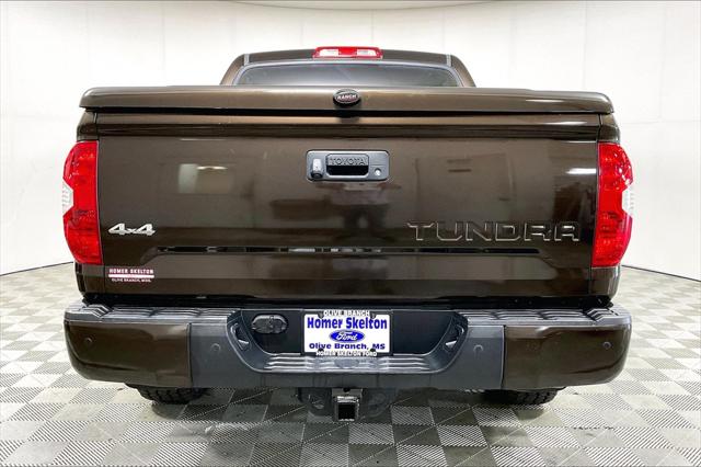 CARFAX One-Owner. Smoked Mesquite 2018 Toyota Tundra 1794 4WD 6-Speed Automatic Electronic with Overdrive V8 **ONE OWNER** **LOCAL TRADE IN** Tundra 1794 4D CrewMax 4WD Brown/Black w/Perforated Leather Seat Trim Entune App Suite Exterior Parking Camera Rear Fully automatic headlights Heated & Ventilated Front Bucket Seats Panic alarm Radio: Entune Premium w/JBL Audio & Navigation Remote keyless entry SIRIUSXM Satellite Radio Speed control Wheels: 20"" x 8J 6-Spoke Alloy w/Accented Spokes.Were confident we have the right price for you the right quality for you the right level of trust for you and the proper respect for how you want to purchase an automobile. We pride ourselves on the best and fastest way to get all the information you need to make well-informed decisions all in 30 minutes or less. Express Buying is Fast Simple Friendly and Fair. It all adds up to the right car buying experience for you. Youll simply love the way we do business. Need specific reasons to start here? Have a look at the list below: Upfront prices. Zero hassles. Homer Skelton Ford makes it easy to find the right car for you at a price you can trust. Your car's no-haggle price is the same online as it is on the lot and we will validate our pricing 100% of the time. We also offer very flexible financing options. We stand behind our cars. All of our used cars are Quality Certified and come with a free vehicle history and safety recall report 72-Hour Money-Back Guarantee and 30-Day Limited Warranty. Certain vehicles may have unrepaired safety recalls. We'll buy your car even if you don't buy ours. Our fast free appraisal process along with our partnership with Kelly Blue Books Trade-In Buying Center ensures the most money for your Trade-In. KBB will write you a check for your automobile or we will! Either cash offer is good for seven days. And we'll buy any car no matter its age or condition. Odometer is 17580 miles below market average!