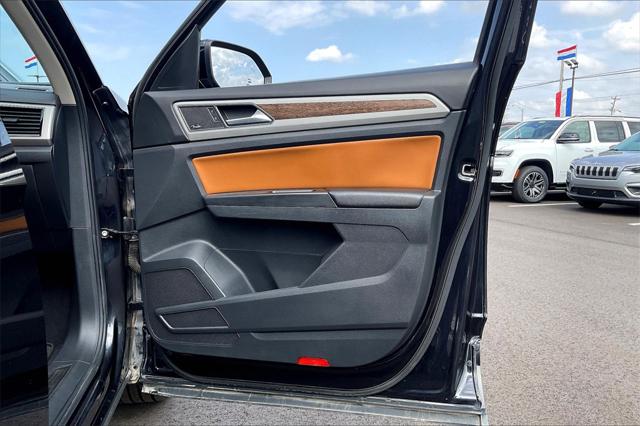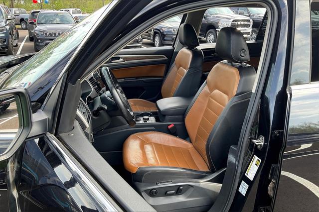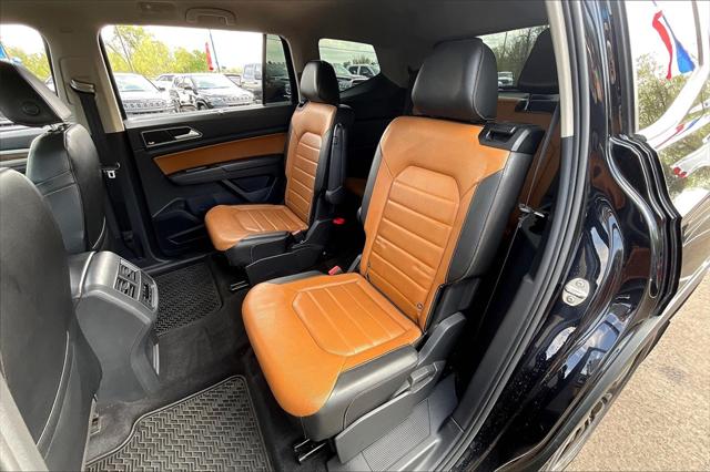 Black 2018 Volkswagen Atlas SEL Premium 4Motion AWD 8-Speed Automatic with Tiptronic 3.6L V6 **Clean Vehicle History Report** 12 Speakers 3.60 Axle Ratio 3rd row seats: split-bench 4-Wheel Disc Brakes ABS brakes Air Conditioning Alloy wheels AM/FM radio: SiriusXM Auto High-beam Headlights Auto-dimming Rear-View mirror Automatic temperature control Brake assist Bumpers: body-color Compass Delay-off headlights Driver door bin Driver vanity mirror Dual front impact airbags Dual front side impact airbags Electronic Stability Control Emergency communication system: VW Car-Net Four wheel independent suspension Front anti-roll bar Front Bucket Seats Front Center Armrest Front dual zone A/C Front fog lights Front reading lights Garage door transmitter: HomeLink Heated door mirrors Heated front seats Heated rear seats Heated steering wheel Heated/Ventilated Front Bucket Seats Hood Deflector Illuminated entry Low tire pressure warning Memory seat Navigation System Occupant sensing airbag Outside temperature display Overhead airbag Overhead console Panic alarm Passenger door bin Passenger vanity mirror Perforated Vienna Leather Seating Surfaces Power door mirrors Power driver seat Power Liftgate Power moonroof Power passenger seat Power steering Power windows Radio data system Radio: Discover Media 8.0"" Touchscreen w/CD/Nav Rain sensing wipers Rear air conditioning Rear anti-roll bar Rear audio controls Rear reading lights Rear seat center armrest Rear window defroster Rear window wiper Remote CD player Remote keyless entry Roof rack: rails only Security system Speed control Speed-sensing steering Split folding rear seat Spoiler Standard Suspension Steering wheel mounted audio controls Tachometer Telescoping steering wheel Tilt steering wheel Traction control Trip computer Turn signal indicator mirrors Variably intermittent wipers Ventilated front seats Wheels: 20"" Mejorada Alloy.Recent Arrival!Awards: * 2018 KBB.com 10 Favorite New-for-2018 Cars * 2018 KBB.com Best Family CarsWere confident we have the right price for you the right quality for you the right level of trust for you and the proper respect for how you want to purchase an automobile. We pride ourselves on the best and fastest way to get all the information you need to make well-informed decisions all in 30 minutes or less. Express Buying is Fast Simple Friendly and Fair. It all adds up to the right car buying experience for you. Youll simply love the way we do business. Need specific reasons to start here? Have a look at the list below: Upfront prices. Zero hassles. Homer Skelton Chrysler Dodge Jeep Ram makes it easy to find the right car for you at a price you can trust. Your car's no-haggle price is the same online as it is on the lot and we will validate our pricing 100% of the time. We also offer very flexible financing options. All of our used cars are Quality Certified and come with a free vehicle history and safety recall report. We'll buy your car even if you don't buy ours.Reviews: * Unlike the third rows of some rivals the Atlas' can comfortably seat adults; all-around visibility is excellent for the class; cabin remains quiet and calm on the highway. Source: Edmunds