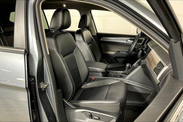 CARFAX One-Owner. Clean CARFAX. Gray 2021 Volkswagen Atlas SEL FWD 8-Speed Automatic with Tiptronic 3.6L V6Homer Skelton is committed to meeting your automotive needs with speed flexibility and friendly customer service. Odometer is 12646 miles below market average!3.60 Axle Ratio 3rd row seats: split-bench 4-Wheel Disc Brakes 6 Speakers ABS brakes Air Conditioning Alloy wheels Auto High-beam Headlights Auto-dimming Rear-View mirror Automatic temperature control Brake assist Bumpers: body-color Compass Delay-off headlights Driver door bin Driver vanity mirror Dual front impact airbags Dual front side impact airbags Electronic Stability Control Emergency communication system: VW Car-Net services (capabilities require enrollment or subscription) Exterior Parking Camera Rear Four wheel independent suspension Front anti-roll bar Front Bucket Seats Front Center Armrest Front dual zone A/C Front fog lights Front reading lights Fully automatic headlights Heated Comfort Front Bucket Seats Heated door mirrors Heated front seats Heated steering wheel Illuminated entry Leather Shift Knob Low tire pressure warning Memory seat Navigation System Occupant sensing airbag Outside temperature display Overhead airbag Overhead console Panic alarm Passenger door bin Passenger vanity mirror Perforated V-Tex Leatherette Seating Surfaces Power door mirrors Power driver seat Power Liftgate Power moonroof Power passenger seat Power steering Power windows Radio data system Rain sensing wipers Rear air conditioning Rear anti-roll bar Rear reading lights Rear seat center armrest Rear window defroster Rear window wiper Remote keyless entry Roof rack: rails only Security system Speed control Speed-sensing steering Split folding rear seat Spoiler Standard Suspension Steering wheel mounted audio controls Tachometer Telescoping steering wheel Tilt steering wheel Traction control Trip computer Turn signal indicator mirrors and Variably intermittent wipers.